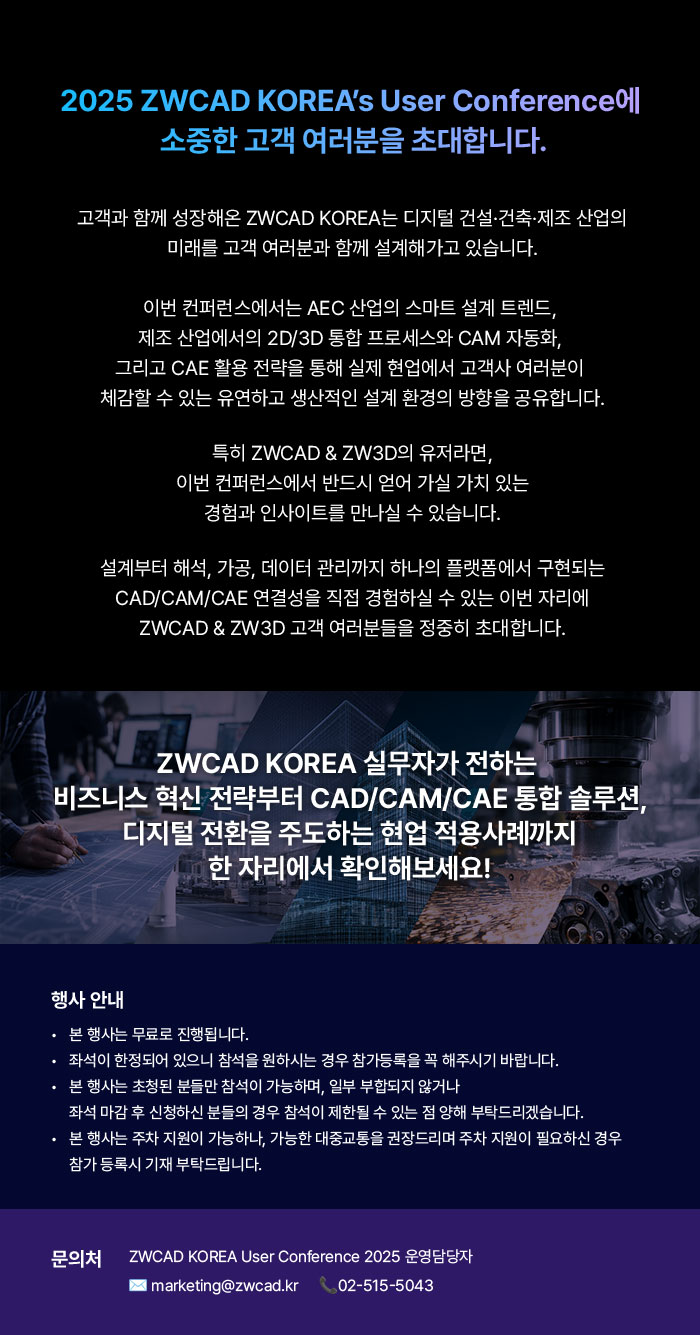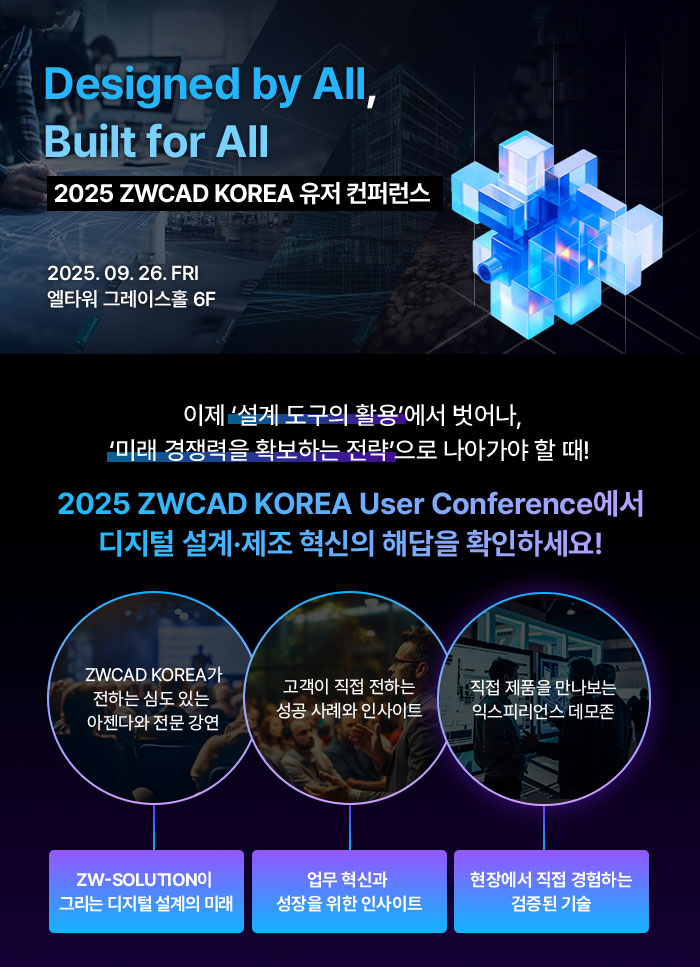 (광고)ZWCAD KOREA와 함께하는 2025 제조 혁신의 길, 여러분을 유저 컨퍼런스에 초청합니다. 09/26(금), 엘타워
