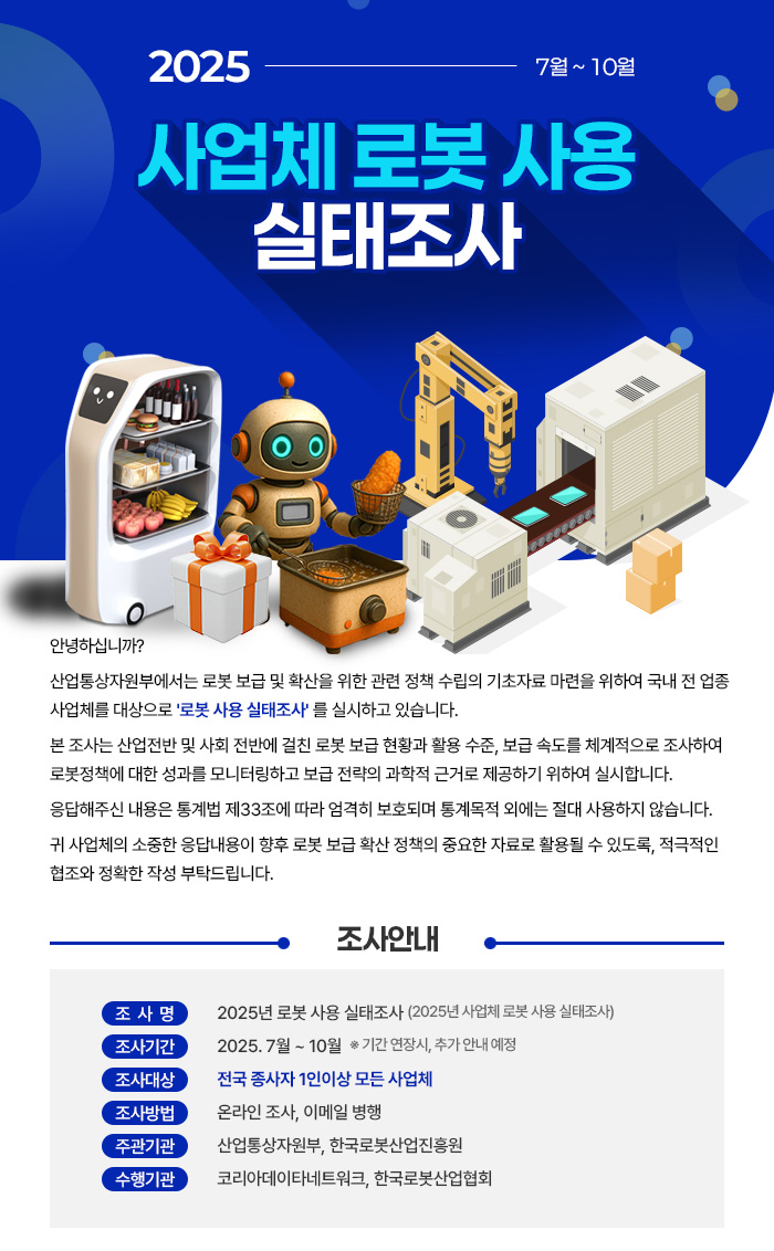 (광고)[한국로봇산업협회] 산업부, 로봇 100만대 보급·확산을 위한 사용 실태조사 안내 (답례품 지급)
