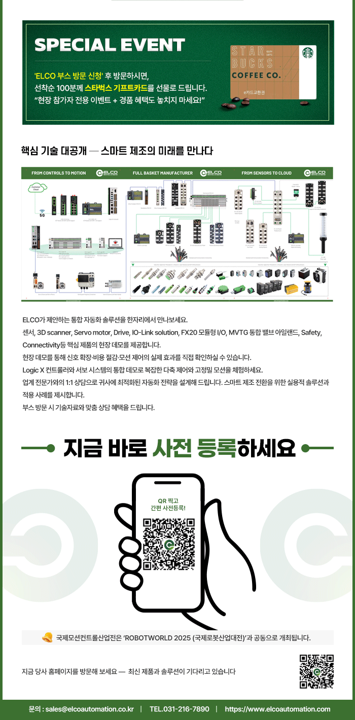 MCS05 부스에서 ELCO의 올인원 자동화 솔루션을 직접 확인하고, 다양한 이벤트도 놓치지 마세요!