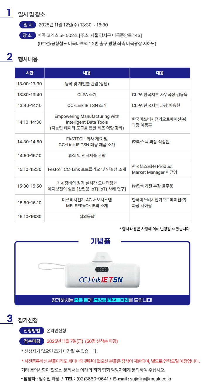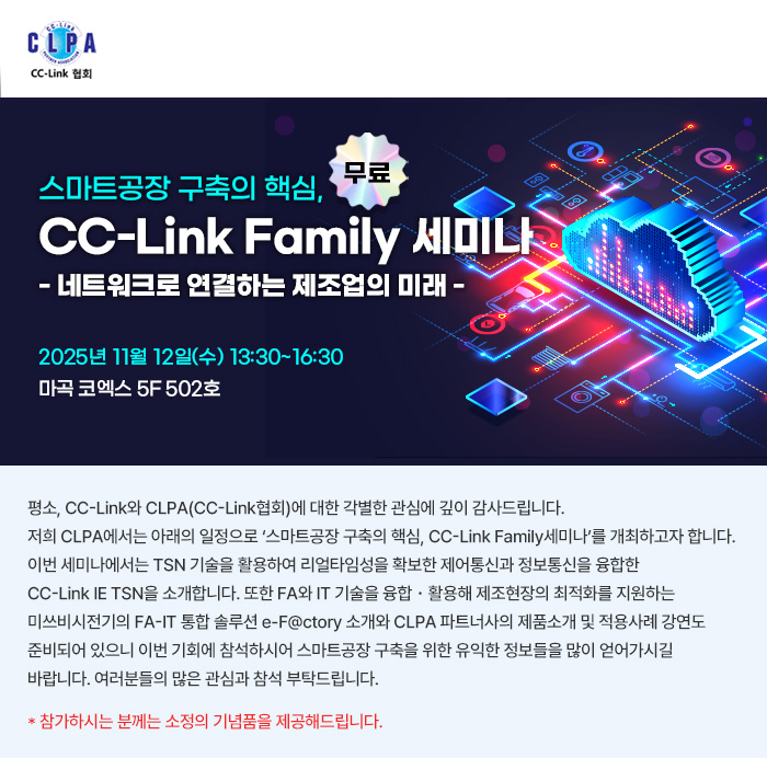 (광고) ‘스마트공장 구축의 핵심, CC-Link Family 유저 세미나’ 개최 안내(무료) – 11/12(수)