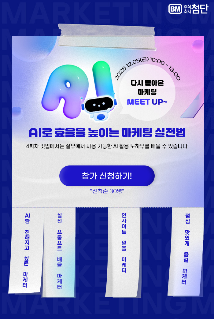 (광고) AI 활용 마케팅 실무 전략 공개 👉 4회 인더스트리 마케터 밋업 지금 신청하세요!