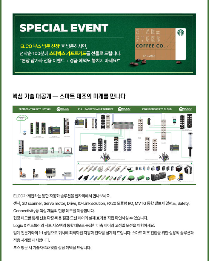 "C930 부스에서 ELCO의 올인원 자동화 솔루션을 직접 확인하고, 다양한 이벤트도 놓치지 마세요!”
