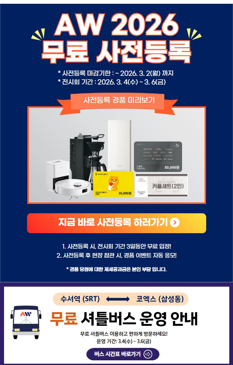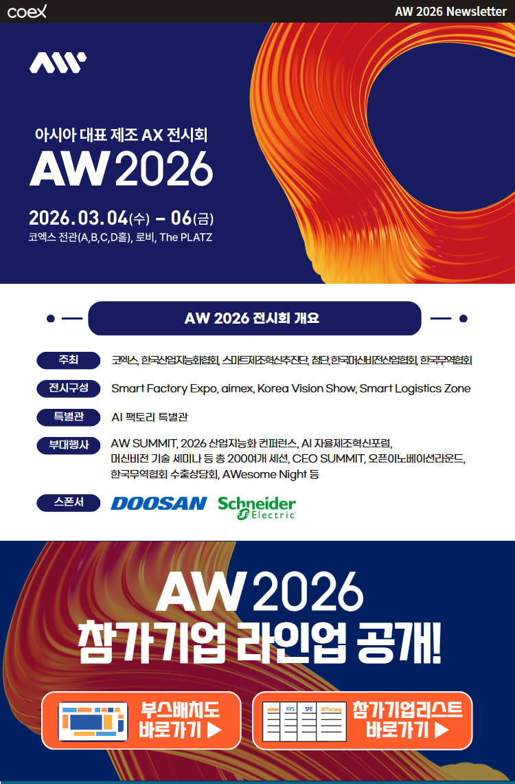 (광고) [AW 2026] 아시아 대표 제조 AX 전시회, 사전등록 마감 D-7 ▶ 지금 바로 참가기업 라인업을 확인하세요 !
